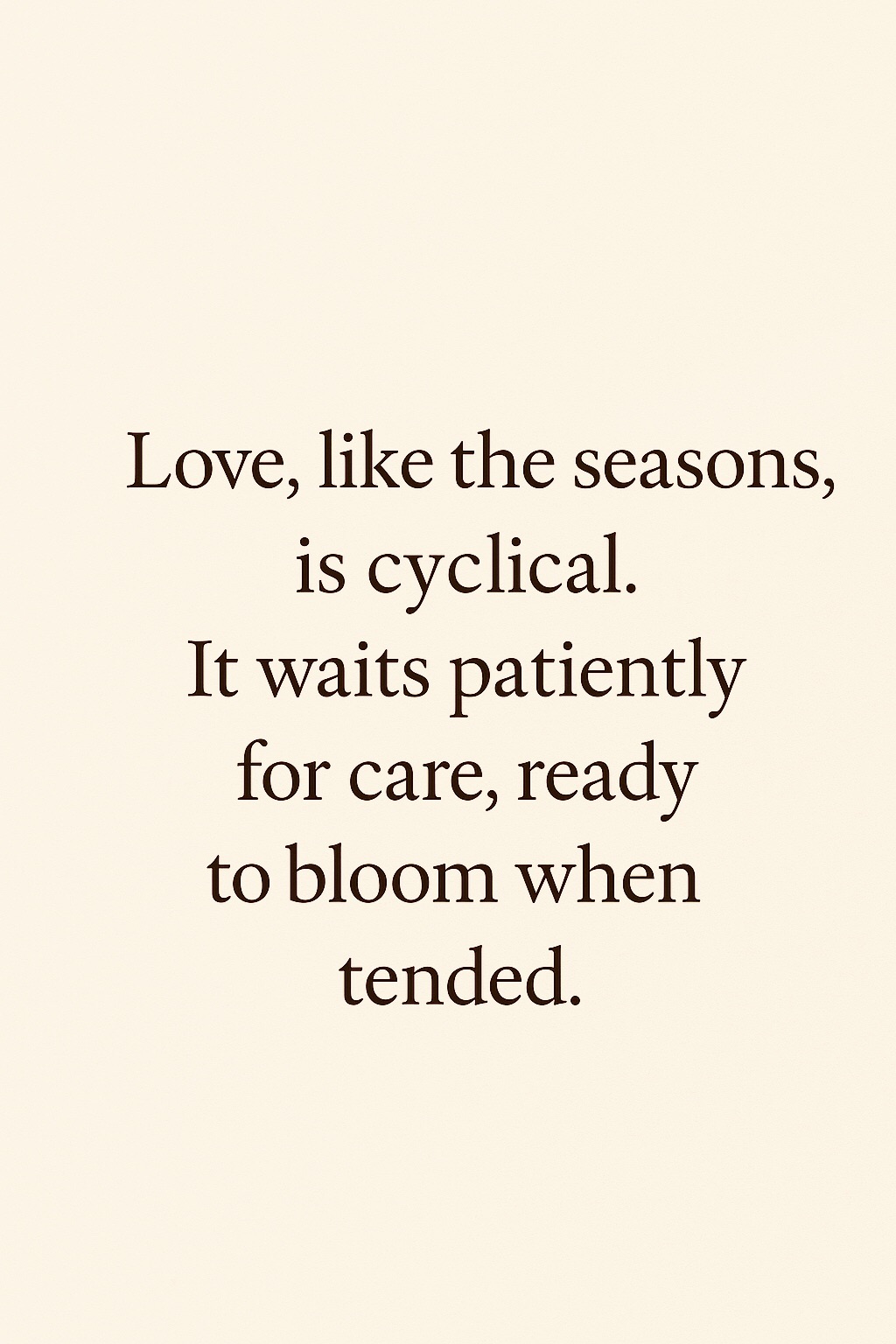 Love, like the seasons, is cyclical. It waits patiently for care, ready to bloom when tended.